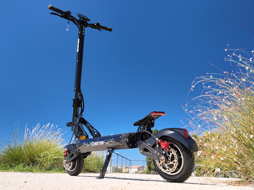 La MOBYGUM Helium Pro 5400 W embarque une double motorisation brushless de 2×2700 W (jusqu’à 6000 W en pic) offrant une accélération foudroyante et une capacité à gravir des pentes jusqu’à 38 %.