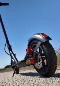 Son système de freinage associe un frein à disque arrière de 120 mm et un frein magnétique régénératif à l’avant, ce qui permet de réduire efficacement la vitesse tout en rechargeant légèrement la batterie lors du freinage.