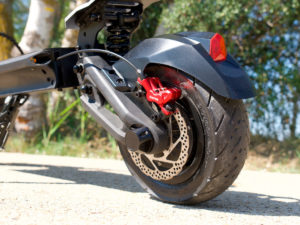 Une bonne suspensions induit forcément une très bonne adhérence sur la route, pensez à les ajuster en fonction de votre poids. La trottinette est vendu pour un réglage à 75kg et un poids maximum de 130kg, ce qui correspond à la limite des suspensions avant d’arriver en buté régulièrement.
