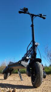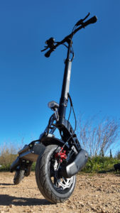 Ce modèle de trottinette électrique vient s’équiper d’une suspensions avant et arrière de type « C », lui offrant l’un des meilleurs conforts existant sur le marché. Le débattement important des suspensions couplé à une garde au sol de 22 cm permet d’autoriser l’utilisation du produit sur des routes dégradées sans grand risque à l’usage et avec l’un des meilleurs confort.